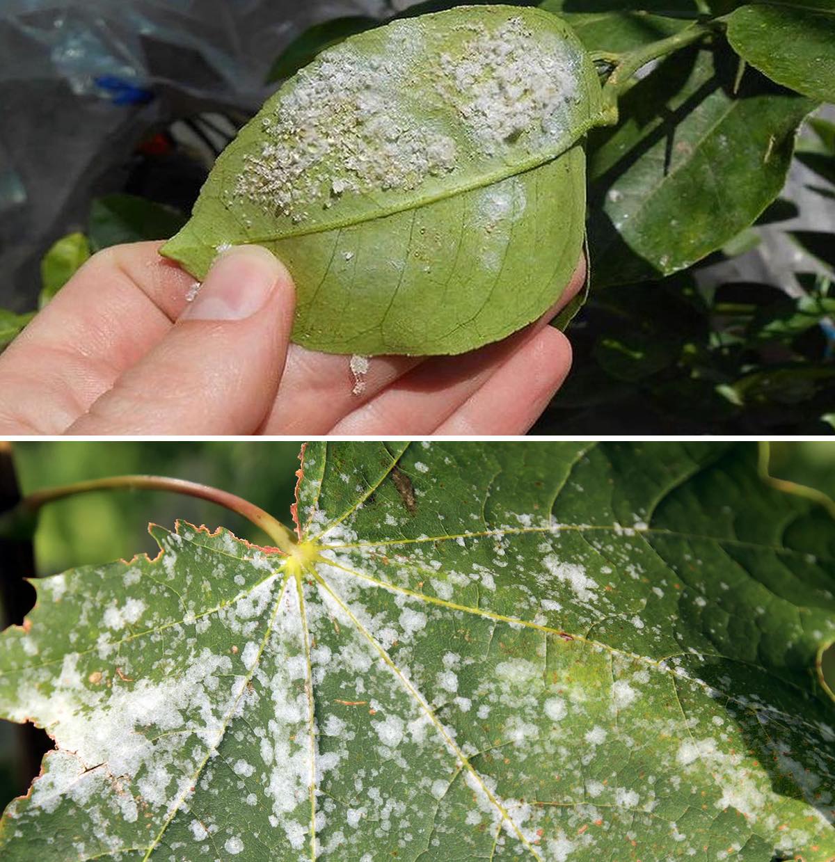Mączlik . Nazywany również mączlikiem cytrusowym, jego naukowa nazwa to Planococcus citri i jest jednym z najpowszechniejszych gatunków. Jest natychmiast rozpoznawalny po białym kolorze i konsystencji przypominającej bawełnę.