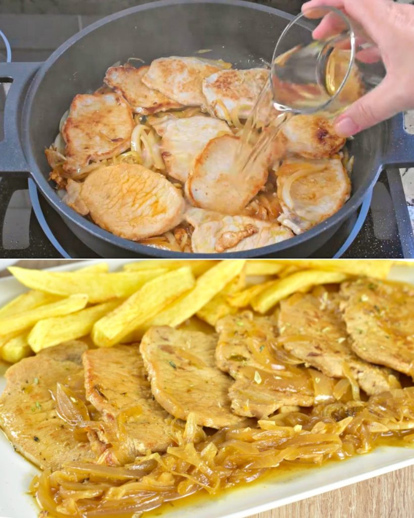 Składniki: 800 g polędwicy wieprzowej 3 ząbki czosnku 1 cebula 1 łyżka masła Oliwa z oliwek Sól i pieprz 1 łyżka oregano 1 łyżeczka papryki Liść laurowy 200 ml białego