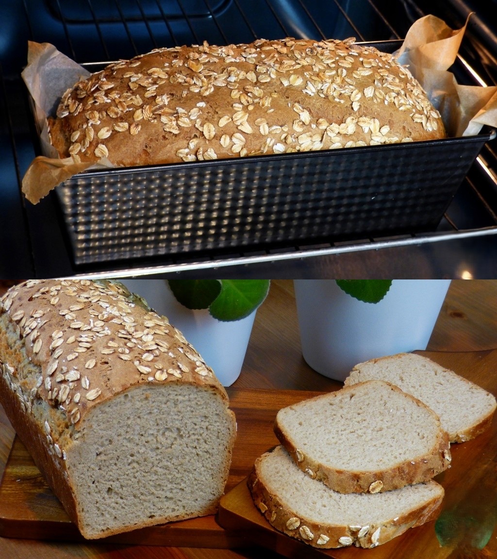 opcjonalnie: płatki owsiane do posypania wierzchu chleba