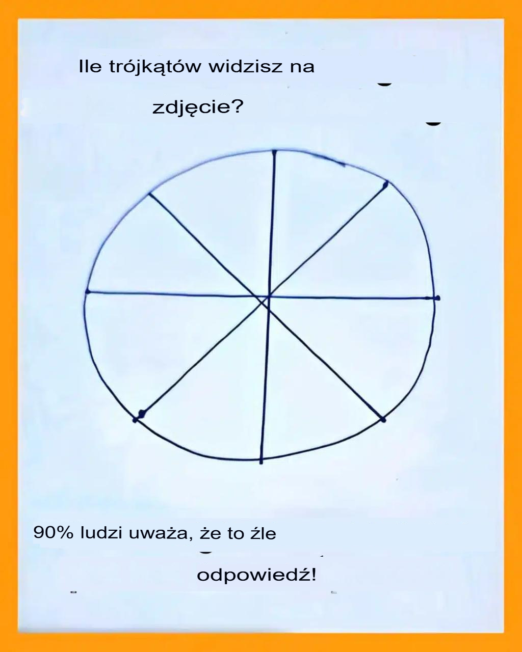 Przypomina tort pokrojony na równe części. Okrąg, cztery proste linie przecinające się w środku i jedno proste, odręcznie napisane pytanie: „Ile widzisz trójkątów?” Brzmi łatwo, prawda? A jednak… To małe wizualne łamigłówka, która szybko rozprzestrzenia się w sieci, stanowi wyzwanie nawet dla najbardziej spostrzegawczych umysłów. Jesteś gotów podjąć wyzwanie?