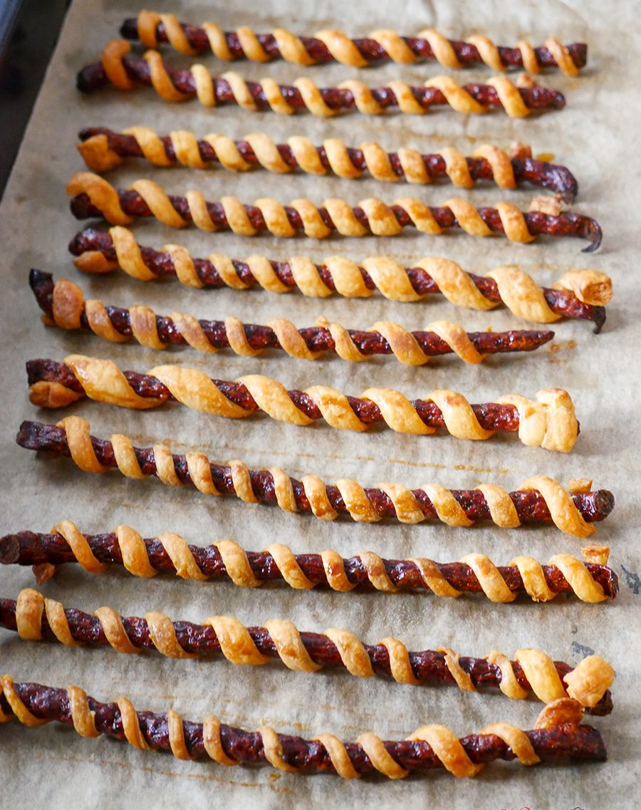 Kabanosy w cieście francuskim to prosta i smaczna przekąska imprezowa, która z pewnością zachwyci gości. Fajnie wygląda i świetnie smakuje. Doskonale sprawdzi się także jako przegryzka w ciągu dnia.