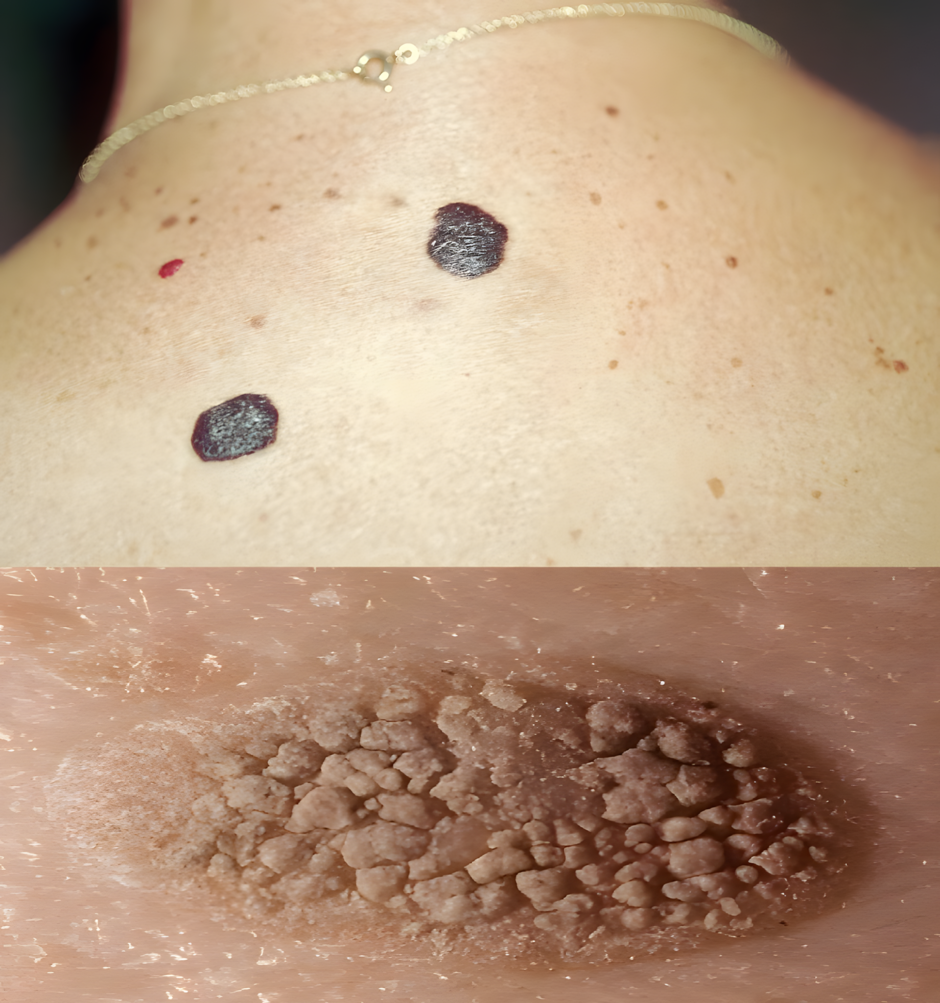 Mogą być gładkie, ziarniste, brodawkowate lub łuszczące się i różnić się kolorem od koloru skóry do jasnobrązowego, a nawet czarnego. Niektóre są płaskie, a inne mogą być bardziej wypukłe.