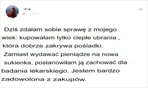 Pewien mężczyzna zaproponował, że zaniesie moje torby z zakupami. Zobaczyłam, że jest przystojny i pomyślałam, że próbuje ze mną flirtować. Kiedy dotarliśmy na przystanek autobusowy, podziękowałam mu z uśmiechem, a on powiedział: « Proszę bardzo, wyglądasz jak moja matka. »