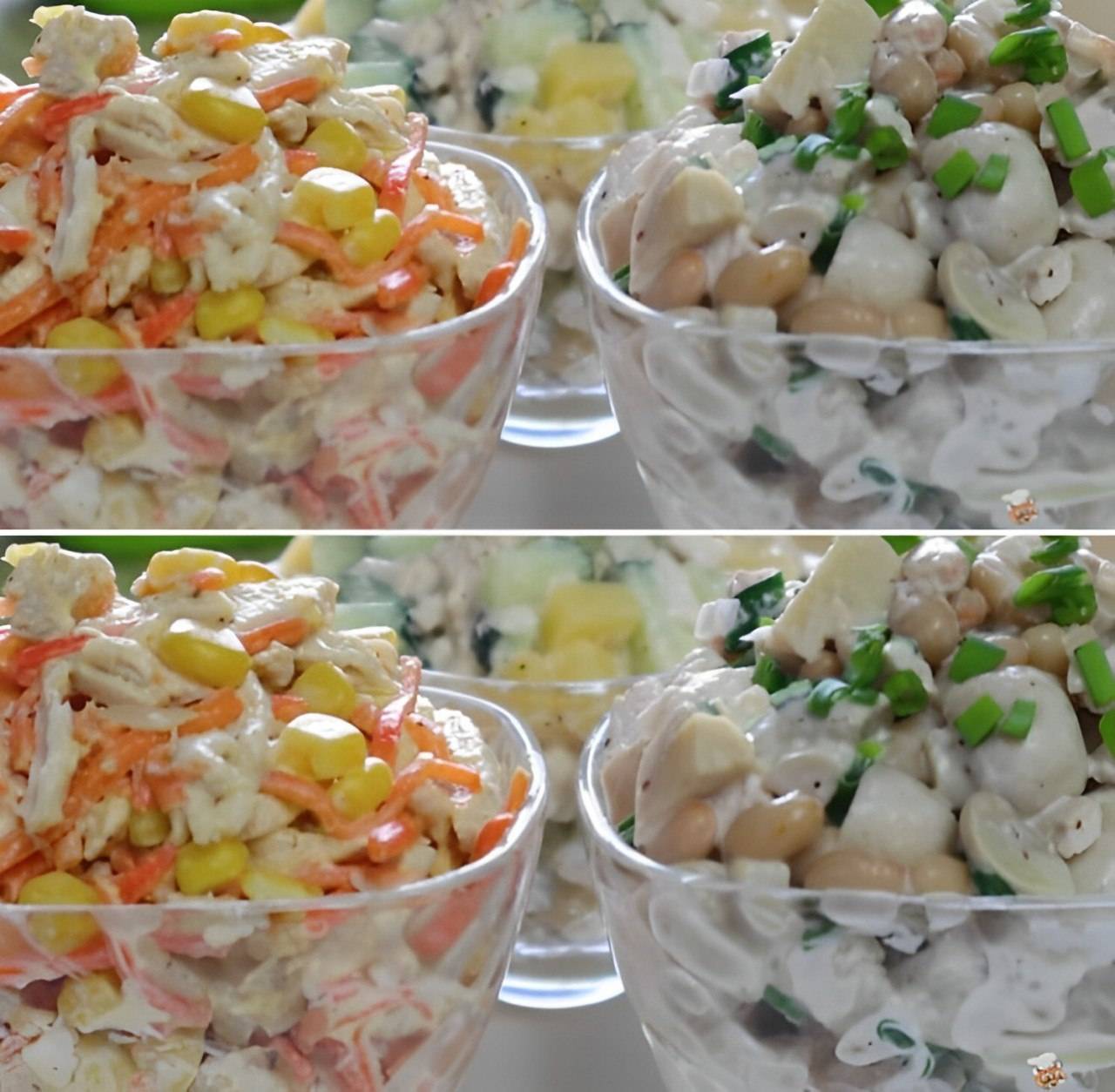 Przygotowujemy trzy wspaniałe sałatki, które okazują się bardzo smaczne, jasne i bogate. Nie można sobie wyobrazić lepszej opcji szybkiej naprawy.
