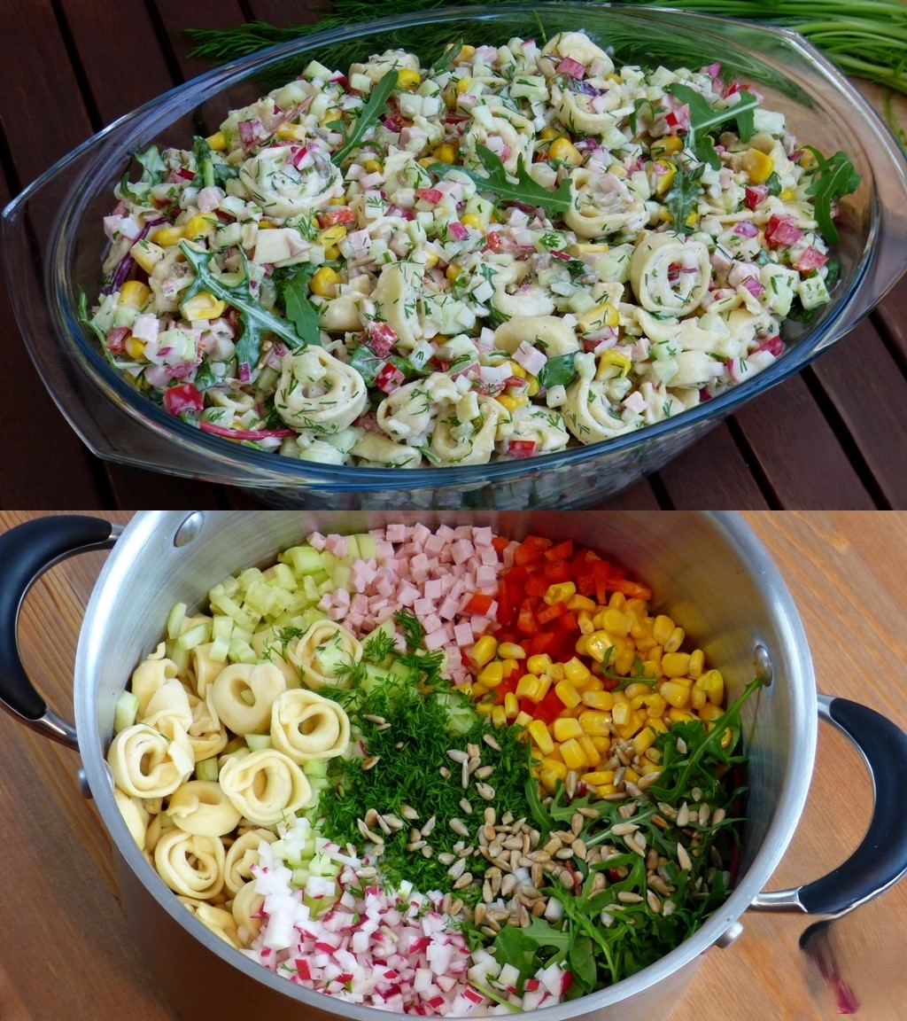 - 1 opakowanie tortellini (250 g) – z ulubionym nadzieniem, u mnie z mięsem
