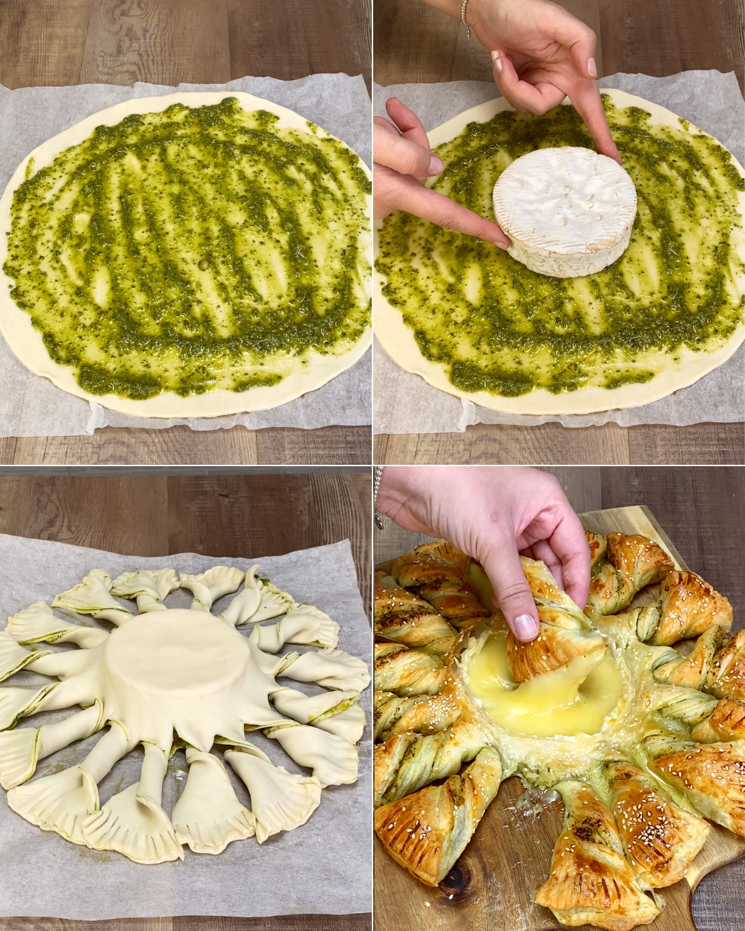 Słoneczniki z ciasta francuskiego to smaczna i pyszna przekąska, którą można podawać również w formie bufetu. Do jego przygotowania użyliśmy dwóch rolek ciasta francuskiego, które posmarowaliśmy pesto bazyliowym, a następnie dodaliśmy do środka słonecznika kawałek sera camembert lub brie. Następnie potrawę piecze się w piekarniku przez mniej niż pół godziny: pod koniec pieczenia będzie chrupiąca na zewnątrz i ma ciągnący się środek. Oto jak przygotować to danie, by zaskoczyć swoich gości.