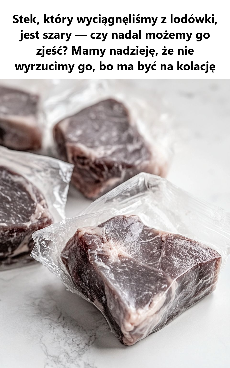 Szare przebarwienie steku może wystąpić z kilku powodów. Jedną z częstych przyczyn jest brak narażenia na tlen, co może się zdarzyć, jeśli stek był przechowywany w opakowaniu próżniowym lub szczelnie owinięty folią. Bez tlenu mioglobina przekształca się w metmioglobinę, która ma szarobrązowy kolor. Ponadto długotrwałe przechowywanie lub niewłaściwe chłodzenie może również prowadzić do zmiany koloru.