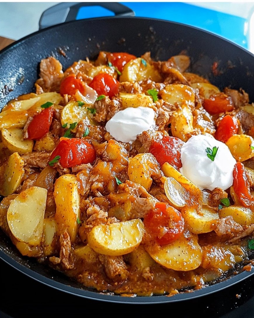 Sycąca Patelnia Ziemniaczano-Paprykowa z Mięsem Mielonym i Crème Fraîche – Idealny Pomysł na Obiad! – Pzepisy