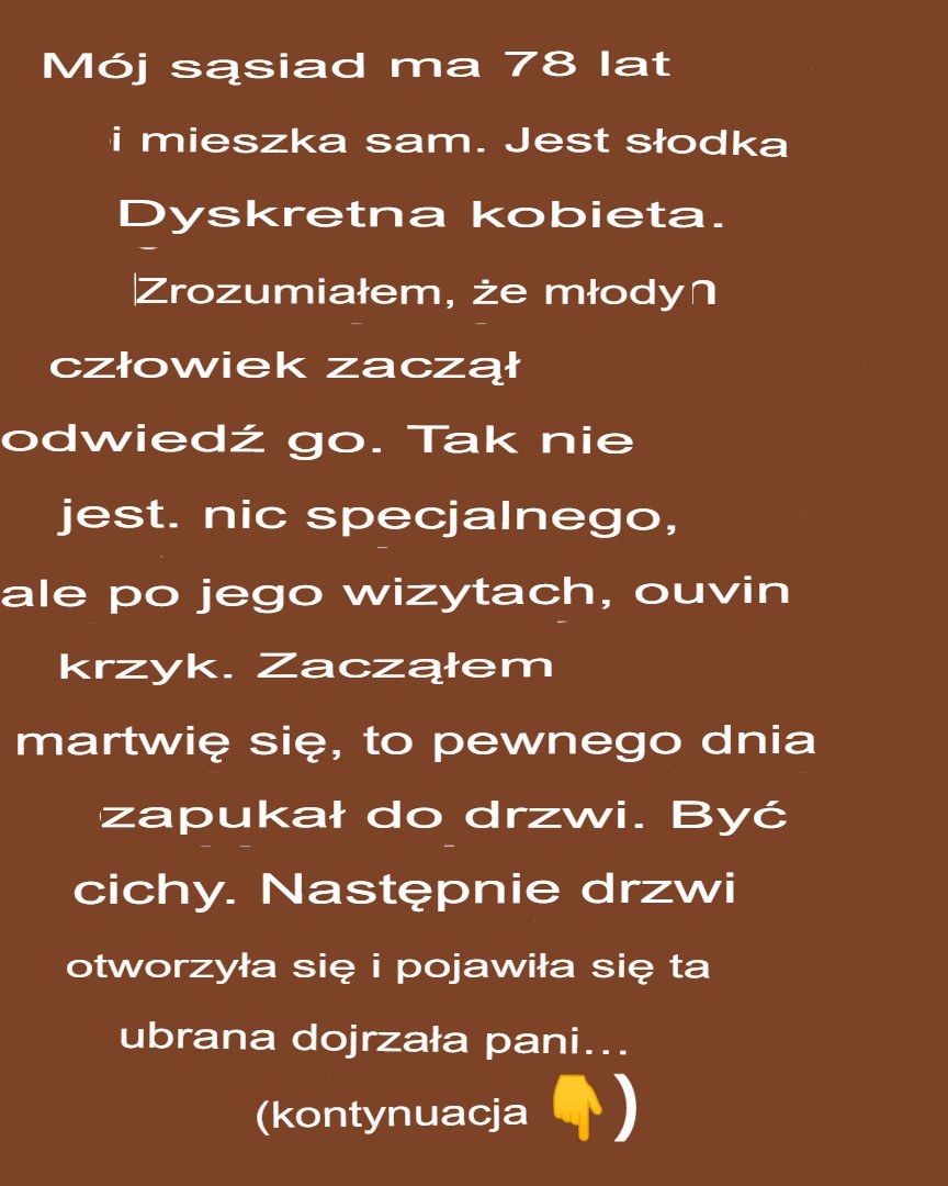 Przez lata Madame Dupont — 78-letnia, owdowiała, bez dzieci blisko siebie — mieszkała sama w swoim mieszkaniu. Zawsze uprzejma, trochę powściągliwa, uosabiała dla Thierry’ego obraz spokojnej emerytki. Aż do tego poranka. Kiedy podlewał rośliny na balkonie, niespodziewany hałas go zamroził: krzyki, stłumione, ale bardzo prawdziwe, dochodziły z mieszkania obok. Wątpliwość, zmartwienie… Czy była w niebezpieczeństwie? Bez wahania pobiegł do jej drzwi.