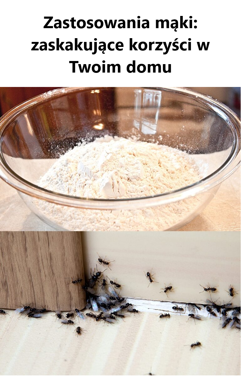 Jeśli masz problem z mrówkami, posyp mąką miejsce, w którym wchodzą i wychodzą. Mrówki nie lubią smaku i konsystencji mąki, więc będą jej unikać.